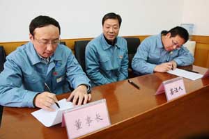 會(huì)上還宣讀了《關(guān)于表彰2017年度HSE先進(jìn)單位和個(gè)人的決定》,公司董事長代表公司與重堿車間、煅燒車間等5家部門代表簽訂了2018年HSE責(zé)任書。