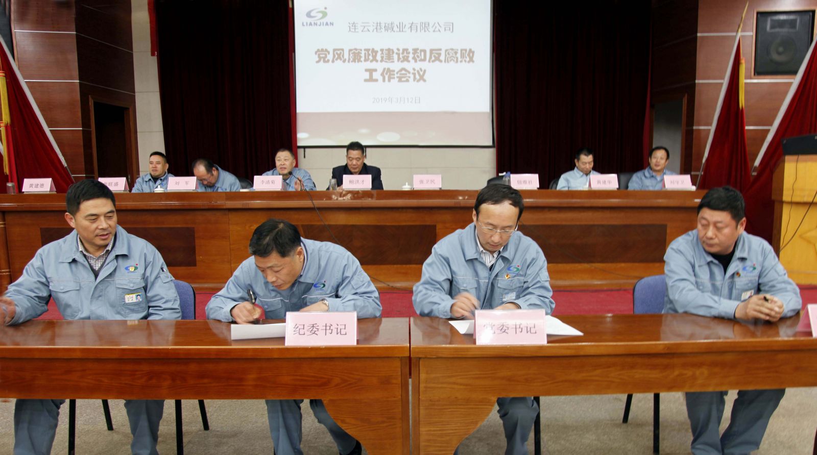 會(huì)后,公司黨委書(shū)記、紀(jì)委書(shū)記分別與銷(xiāo)售、供應(yīng)等重要部門(mén)黨政負(fù)責(zé)人簽訂《2019年黨風(fēng)廉政建設(shè)目標(biāo)責(zé)任書(shū)》,與會(huì)人員全部簽訂了《廉潔從業(yè)承諾書(shū)》。