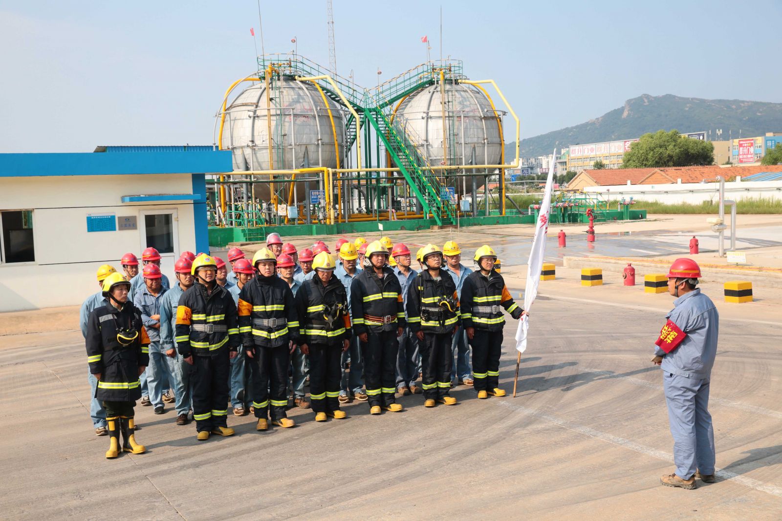 為檢驗(yàn)公司應(yīng)急救援時(shí)各環(huán)節(jié)的協(xié)調(diào)能力和應(yīng)急救援預(yù)案的可操作性,提高應(yīng)急人員在緊急情況下妥善處置突發(fā)事件的實(shí)戰(zhàn)能力,9月5日,公司以“液氨庫(kù)B球罐底部發(fā)生泄漏,現(xiàn)場(chǎng)當(dāng)班工人中毒”為假想事故,在液氨庫(kù)舉行秋季危險(xiǎn)化學(xué)品生產(chǎn)安全事故應(yīng)急救援演練。