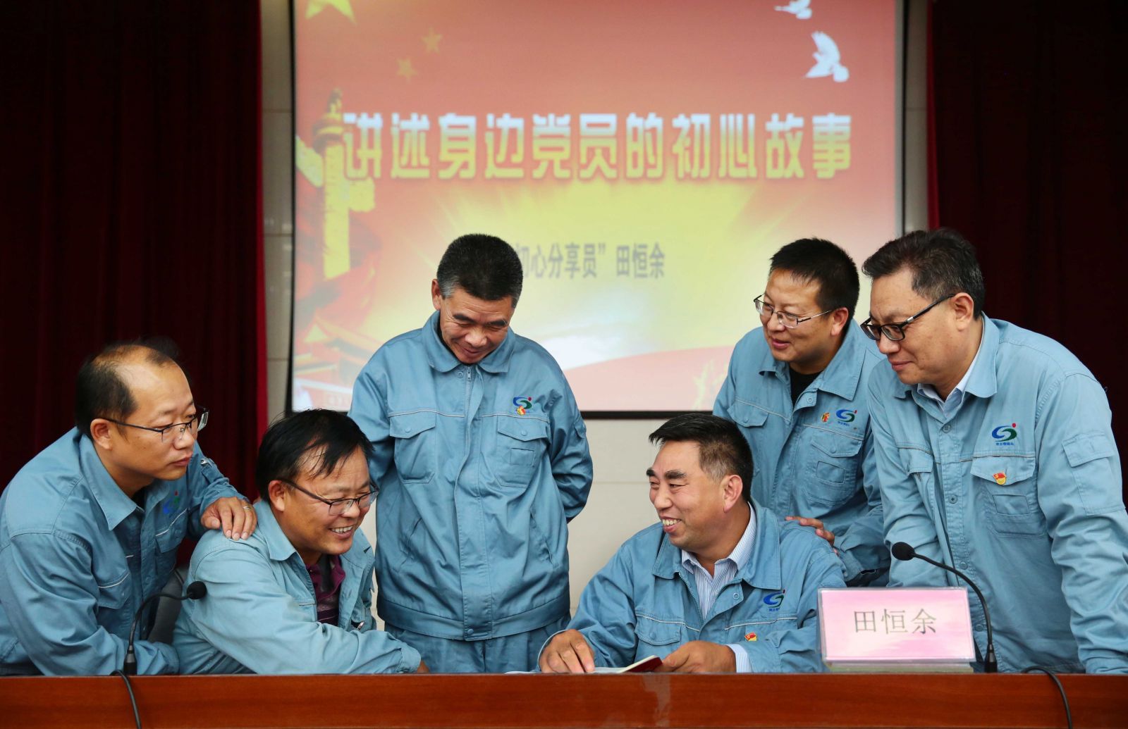 田恒余是我公司重堿車間碳化工段長(zhǎng),1990年7月入黨,工作32年一直堅(jiān)守在基層一線。在初心分享會(huì)上,他首先分享了他自己崇拜的優(yōu)秀黨員焦裕祿的感人事跡。隨后,用樸實(shí)無(wú)華的語(yǔ)言,講述了自己加入中國(guó)共產(chǎn)黨及參加工作的經(jīng)歷。無(wú)論在什么崗位上,他都始終不忘自己是個(gè)共產(chǎn)黨員,始終以黨員的標(biāo)準(zhǔn)嚴(yán)格要求自己,充分發(fā)揮黨員的先鋒模范作用。他用自己的勤奮執(zhí)著與使命擔(dān)當(dāng),從一名初級(jí)工逐步成長(zhǎng)為高級(jí)技師、主任技師和國(guó)家級(jí)技能考評(píng)員,并先后獲得了江蘇省優(yōu)秀共產(chǎn)黨員、市勞模、江蘇省五一勞動(dòng)獎(jiǎng)?wù)隆⑷珖?guó)五一勞動(dòng)獎(jiǎng)?wù)路Q號(hào),被評(píng)為江蘇省十佳文明職工、江蘇省技術(shù)能手、江蘇省首席員工、連云港市十大港城工匠,享受國(guó)務(wù)院政府特殊津貼。他說(shuō),他成績(jī)的取得離不開各級(jí)組織的培養(yǎng)和支持,作為一名共產(chǎn)黨員,今后仍要不忘初心,砥礪前行,用實(shí)際行動(dòng)展現(xiàn)入黨時(shí)的錚錚誓言。