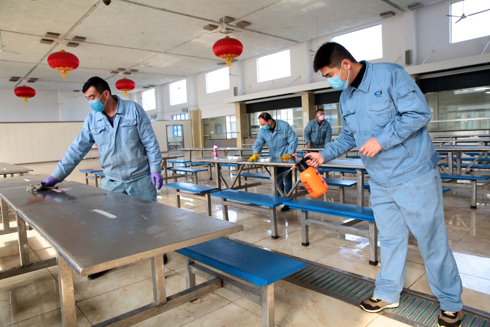 公司內(nèi)部的事宜由副總經(jīng)理焦旺盛統(tǒng)一負(fù)責(zé)安排落實,嚴(yán)抓內(nèi)部管控。健康安環(huán)部負(fù)責(zé)布置落實各班組建立職工體溫臺帳,發(fā)現(xiàn)異常情況及時報告。加強檢查頻率,建立日報告制度,負(fù)責(zé)廢舊口罩回收處理;對接供應(yīng)部做好應(yīng)急防護物資的備、采工作,每天統(tǒng)計好公司的應(yīng)急物資并按要求上報上級部門;安排好人員的測溫工作。物管中心定時對食堂、浴室等公共場所消毒;保衛(wèi)部加強門禁管理,做好進入公司人員的監(jiān)管,非我公司職工未經(jīng)批準(zhǔn)一律暫停進入公司;同時負(fù)責(zé)口罩的發(fā)放;設(shè)備部、技術(shù)部通知公司外委承包商暫停進廠作業(yè);人力資源部負(fù)責(zé)通知勞務(wù)承包商,除從事正常倒班的外用工外,其余一律暫停進廠作業(yè);黨群部負(fù)責(zé)通過公司內(nèi)網(wǎng)、微信公眾號等宣傳平臺加大防控工作的正面宣傳和引導(dǎo)的力度,多宣傳一些防控知識,多宣傳防控期間公司一些典型照片、事跡,同時向上級主管部門報道;辦公室做好節(jié)假日延期的相關(guān)通知與安排,及時傳達上級精神,協(xié)調(diào)、配合好公司內(nèi)部各部門、車間做好防控的相關(guān)工作。