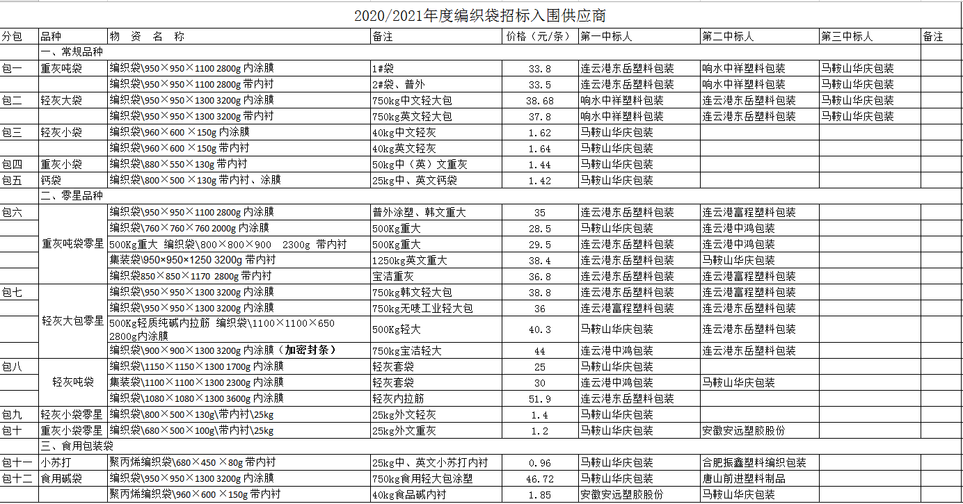 連云港堿業(yè)有限公司編織袋招標(biāo)評審結(jié)果公示