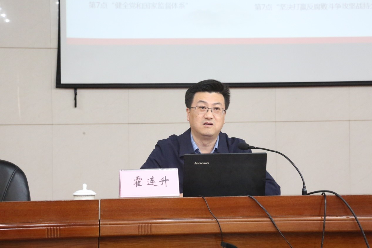 會上,市紀(jì)委霍連升主任從“順應(yīng)大勢,準(zhǔn)確把握正風(fēng)肅紀(jì)反腐敗時(shí)代特征”、“深入剖析典型案例,汲取深刻教訓(xùn)”、“切實(shí)增強(qiáng)紀(jì)法觀念,堅(jiān)守清廉底線”等三個(gè)方面對公司全體黨員干部進(jìn)行了一次深刻的黨風(fēng)廉政教育。期間,霍主任引用大量的案例,對全面從嚴(yán)治黨理論和黨紀(jì)黨規(guī)做出了深刻闡釋。通過算好人生“七本賬”,逐項(xiàng)進(jìn)行對比分析,明辨利弊得失,與會黨員干部清楚地明白了該選擇什么、放棄什么,進(jìn)一步堅(jiān)定政治立場,堅(jiān)守廉潔底線,選對自己的人生路。