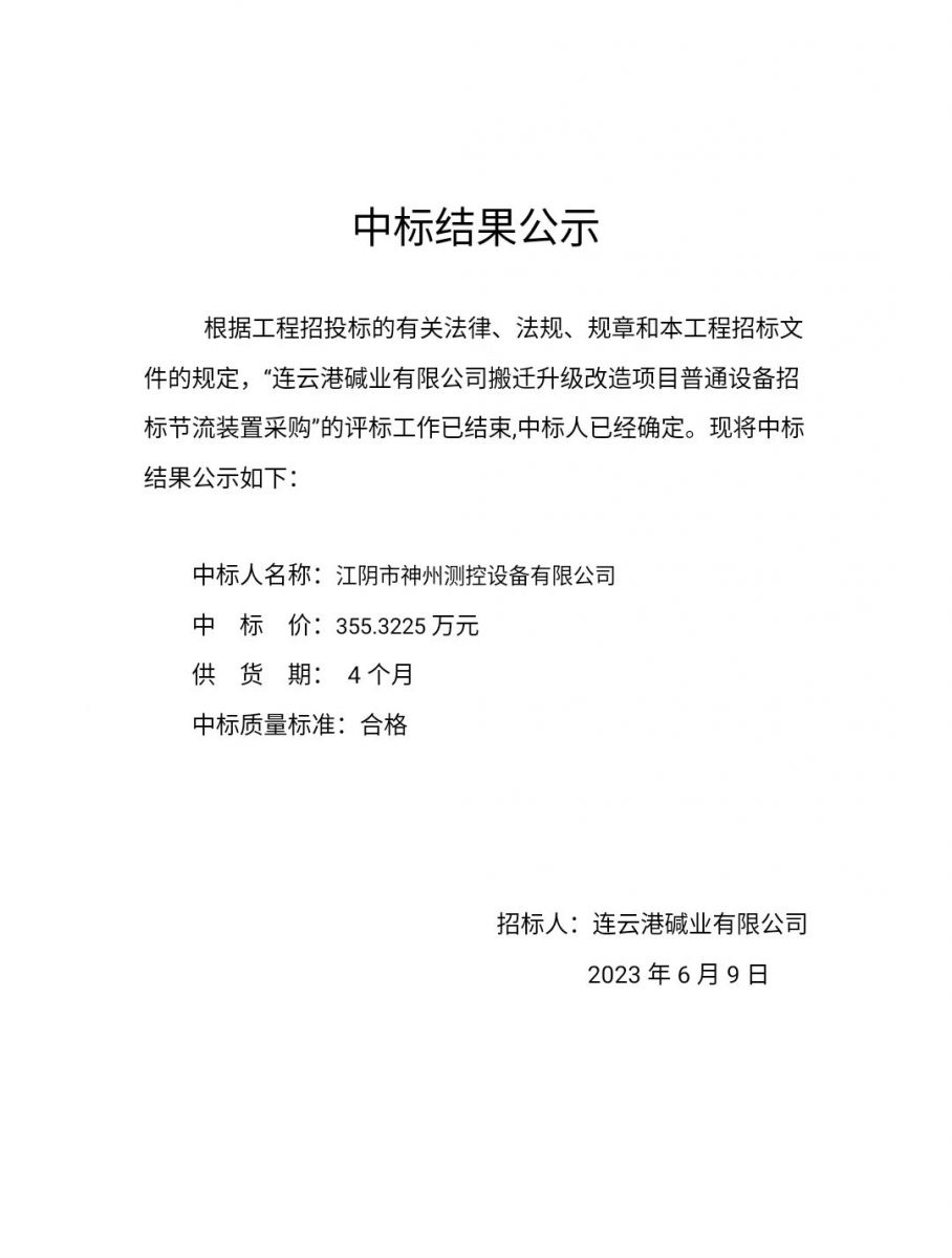 節(jié)流裝置采購中標公示