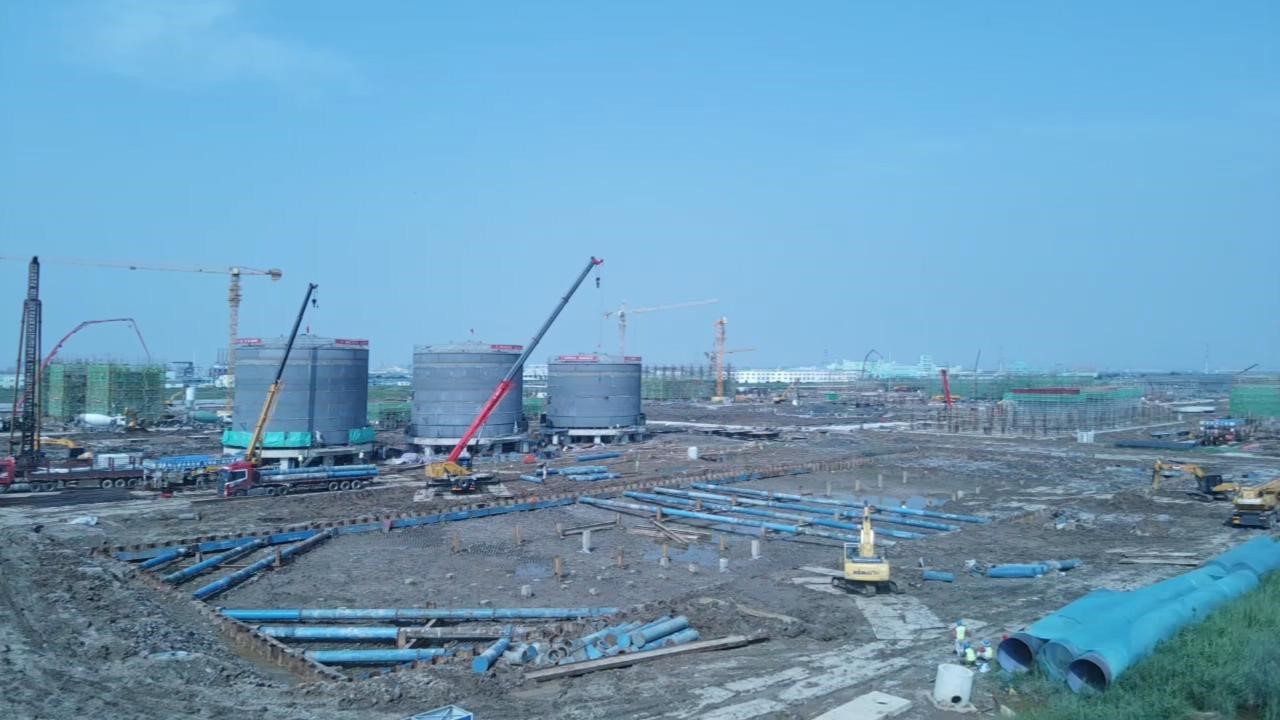 ⑶聯(lián)堿三標(biāo)段420脫鹽水站室外水池底板鋼筋綁扎;810火炬基礎(chǔ)短柱砼澆筑;561事故水池第一段砼澆筑完成,第三段開(kāi)始鋼筋綁扎;540小蘇打裝置基礎(chǔ)防腐、4個(gè)設(shè)備基礎(chǔ)養(yǎng)護(hù);160編織袋庫(kù)防腐粉刷;535成品庫(kù)房33軸~44軸筏板鋼筋模板安裝、筏板砼澆筑、承臺(tái)及基礎(chǔ)梁開(kāi)挖。