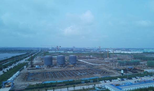 ⑶聯(lián)堿三標(biāo)段420脫鹽水站柱子焊預(yù)埋鋼板安全通道搭設(shè);402凈水站底板混凝土換撐澆筑完成,加藥間主體結(jié)構(gòu)澆筑完成;430污水處理污泥廠房污泥脫水廠房二層頂板模板,鋼筋綁扎,綜合調(diào)節(jié)池生產(chǎn)污水事故池、綜合調(diào)節(jié)池、高效沉淀池AB測量定位糾偏;440污水回用污水回用超濾反洗液收集池回填,設(shè)備基礎(chǔ)交接,儲藥間承臺地梁回填完,設(shè)備基礎(chǔ)施工;810火炬模板拆除;561事故水池蓄水實驗、清理;118停車辦公區(qū)砌筑;540小蘇打裝置一層梁底板模板安裝;535成品庫房1~22軸承臺及地梁鋼筋模板,22軸~33軸筏板澆筑,45軸~56軸筏板鋼筋綁扎。
