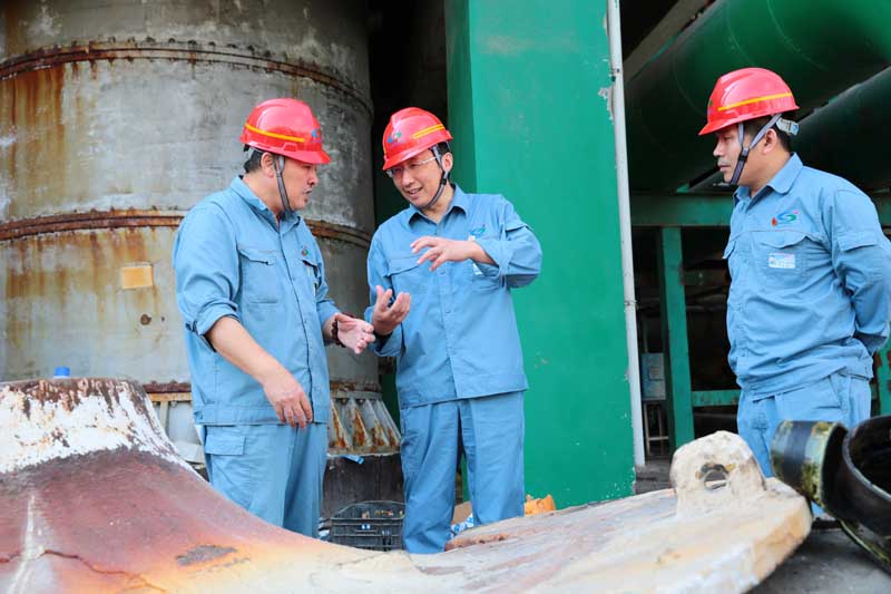 在重堿車間現(xiàn)場,張衛(wèi)民囑咐車間負(fù)責(zé)人,在高溫時(shí)節(jié)不僅要抓好生產(chǎn)運(yùn)行,更要注意酷暑天氣下安全管理和員工的身體健康。