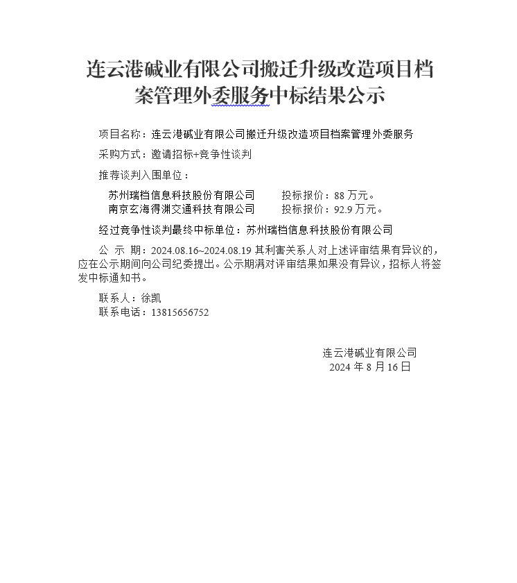 搬遷升級改造項目檔案管理外委服務(wù)中標結(jié)果公示