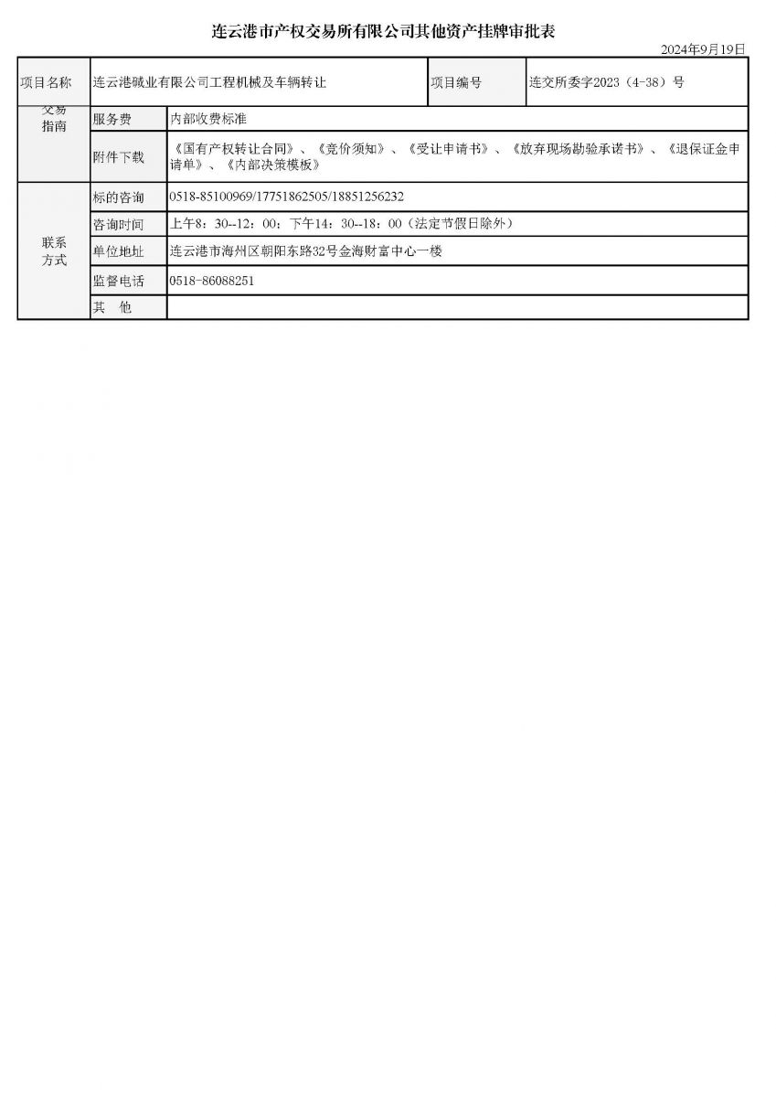 連云港堿業(yè)有限公司工程機(jī)械及車(chē)輛轉(zhuǎn)讓資產(chǎn)掛牌審批表