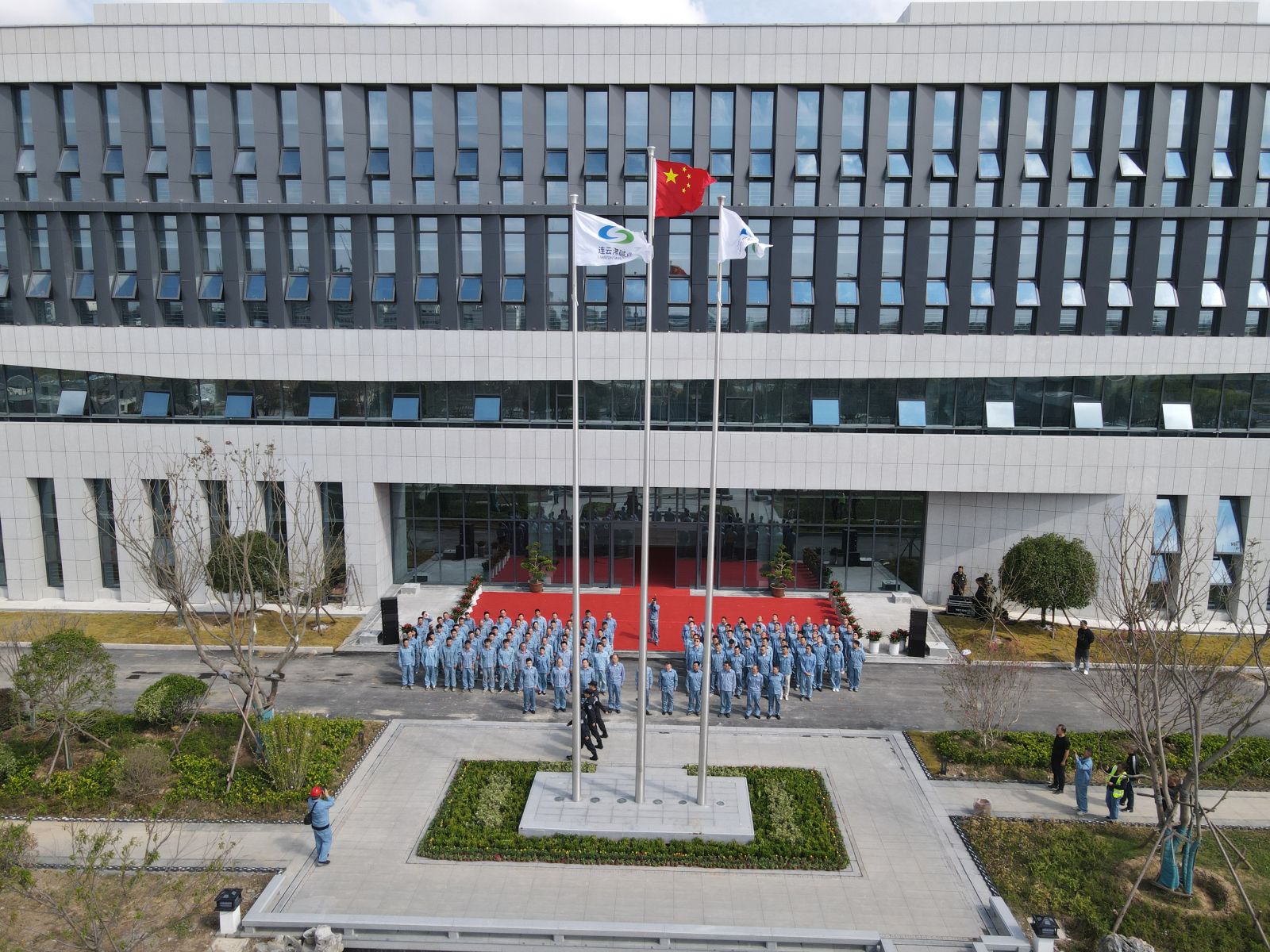 儀式伊始,公司在綜合樓前舉行莊嚴(yán)肅穆的升旗儀式,3名護(hù)旗手邁著鏗鏘有力的步伐,莊重地將國(guó)旗護(hù)送至升旗臺(tái)。伴隨著雄壯的《義勇軍進(jìn)行曲》,五星紅旗冉冉升起。